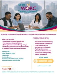 Participants can expect to engage with lending institutions, grant opportunities, and WORC program staff across Savings, Training, and Lending. The conference is intended for individuals and families at various stages of readiness who are seeking tools, capital, and information to strengthen their financial future.